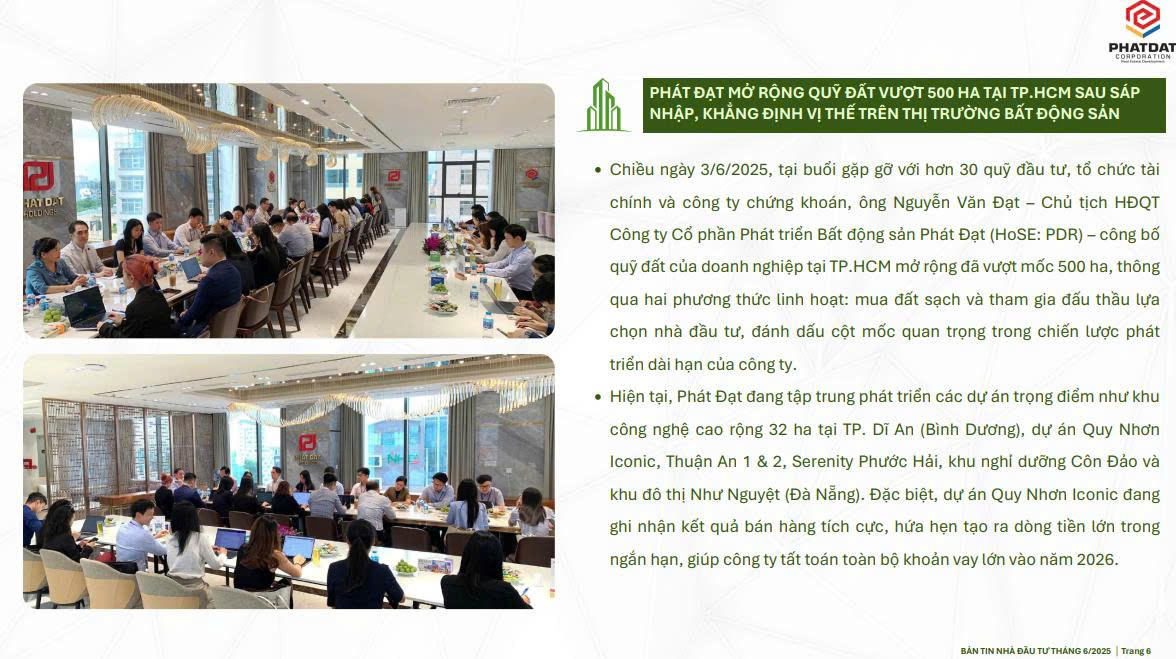 Bên cạnh đó, với hơn 500 ha quỹ đất sạch tại các khu vực giàu tiềm năng phát triển, Phát Đạt đang sở hữu một lợi thế chiến lược hiếm có trên thị trường. Không chỉ đảm bảo nguồn lực triển khai dài hạn, quỹ đất này còn là điểm tựa giúp doanh nghiệp duy trì sức bật tăng trưởng và hấp dẫn trong mắt giới đầu tư. Với cách tiếp cận linh hoạt và tầm nhìn dài hạn, quỹ đất này mang lại cho Phát Đạt lợi thế kép: vừa chủ động trong triển khai dự án, vừa gia tăng sức hấp dẫn trong mắt nhà đầu tư – đặc biệt trong bối cảnh quỹ đất nội đô ngày càng khan hiếm.