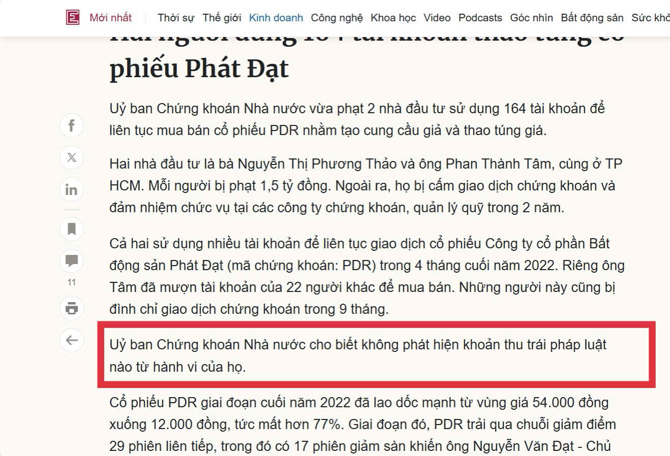 Đầu tiên, tôi muốn làm rõ về những tin đồn tiêu cực liên quan đến PDR, kiểu như có gì mờ ám – toàn chuyện không có căn cứ! Cơ quan chức năng đã vào cuộc kiểm tra và đưa ra kết luận chính thức: PDR không có bất kỳ hành vi thu nhập trái pháp luật hay sai phạm nào. Vậy thì những thông tin kiểu “nước cờ giải cứu” hay “khủng hoảng” mà một số báo chí giật tít là từ đâu ra?, một số báo lớn cũng trích dẫn thông tin rõ ràng, tách bạch. Tuy nhiên một số số bên thì nói không rõ đặc biệt là đặt các tiêu đề gây hiểu nhầm cho NĐT. Rõ ràng, đó có thể chỉ là chiêu trò câu view, thổi phồng sự việc để gây chú ý, nhắm vào PDR như một mục tiêu dễ thu hút dư luận. Thực tế, PDR vẫn hoạt động bình thường, làm ăn minh bạch và tâp trung vào kế hoạch kinh doanh bùng nổ cho năm 2025, và không hề có dấu hiệu lung lay như những tin đồn kia. Anh em đầu tư nên dựa vào kết luận chính thức từ cơ quan chức năng và xem kĩ nội dung, đừng để những thông tin không kiểm chứng hay các tiêu đề giật tít gây hiểu nhầm làm ảnh hưởng đến quyết định của mình!