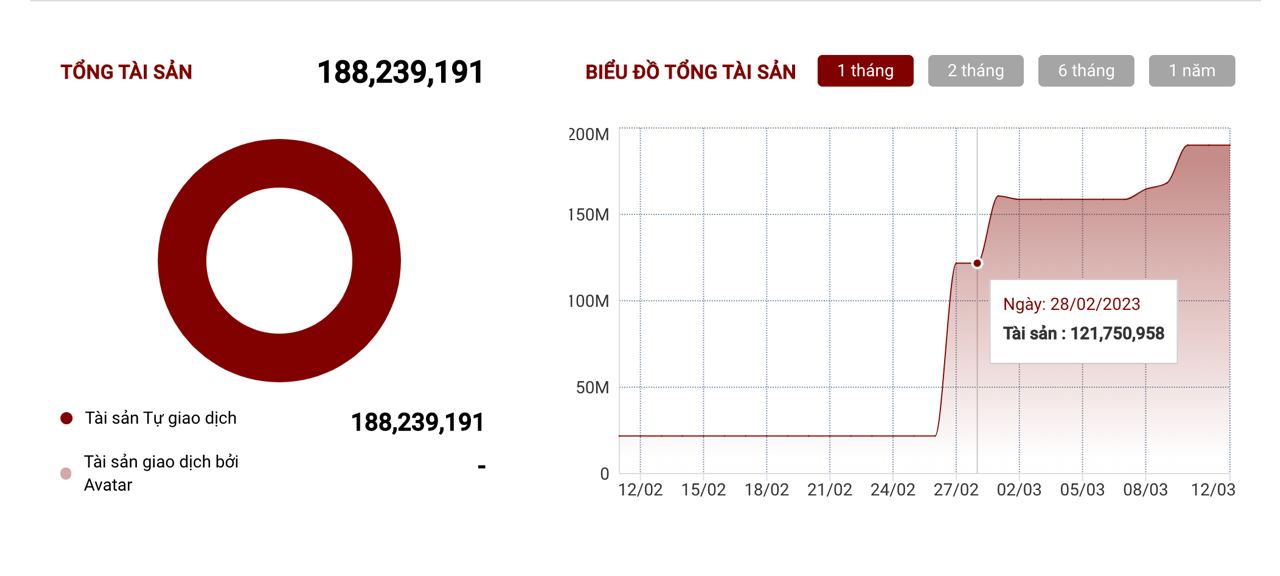 - Dưới đây là tài khoản phái sinh mẫu mình thử nghiệm mở bên Entrade giao dịch bằng tiền thật, nay mình tổng kết sau 11 ngày ( 02/03 – 13/03 ) với số vốn ban đầu là gần 122 triệu đồng tới kết phiên 12/03 là 188 triệu đồng đạt 56.6% sau 11 ngày qua khi mà thị trường đi ngang dòng tiền phân hóa, đa số đều có lãi ít và thua lỗ. Rủi ro vẫn túc trực tuy nhiên mọi người có thể thấy hiệu quả khi đầu tư có phương pháp đó là 1 ngày không cần đi quá nhiều lệnh chỉ cần xác định xu hướng và quản trị rủi ro, Tỷ lệ lãi trung bình trên 1 Deal của mình là 20.19%. Winrate = 8/2 ( nghĩa là 10 lệnh thắng 8 lệnh với lãi TB = 20.19%, thua 2 lệnh lỗ TB 5.18%),