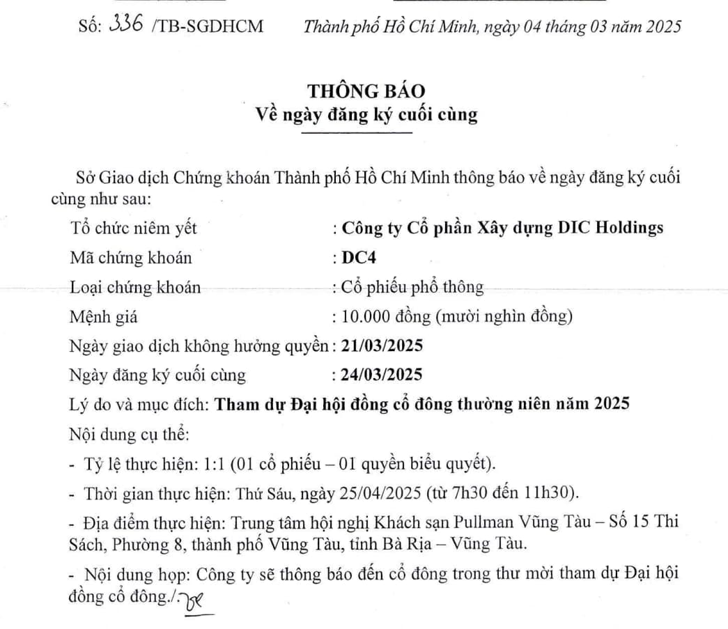 DC4 chốt ngày ĐHCĐ, giờ chờ xem tờ trình năm 2025 có gì hót không. Đương nhiên kế hoạch năm nay vẫn doanh thu trên 1000 tỷ và lợi nhuận từ 200 tỷ đến 250 tỷ là khả thi khi hạch toán dự án VTCP.