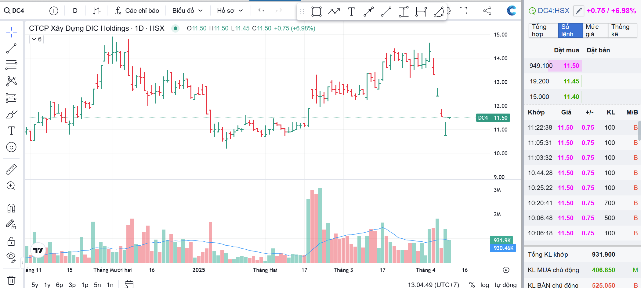 Nhìn vào giao dịch của DC4 2 phiên thị trường rung lắc thấy rõ, lượng cung bên ngoài trước khi hàng phát hành về chưa tới 5 triệu cổ phiếu.