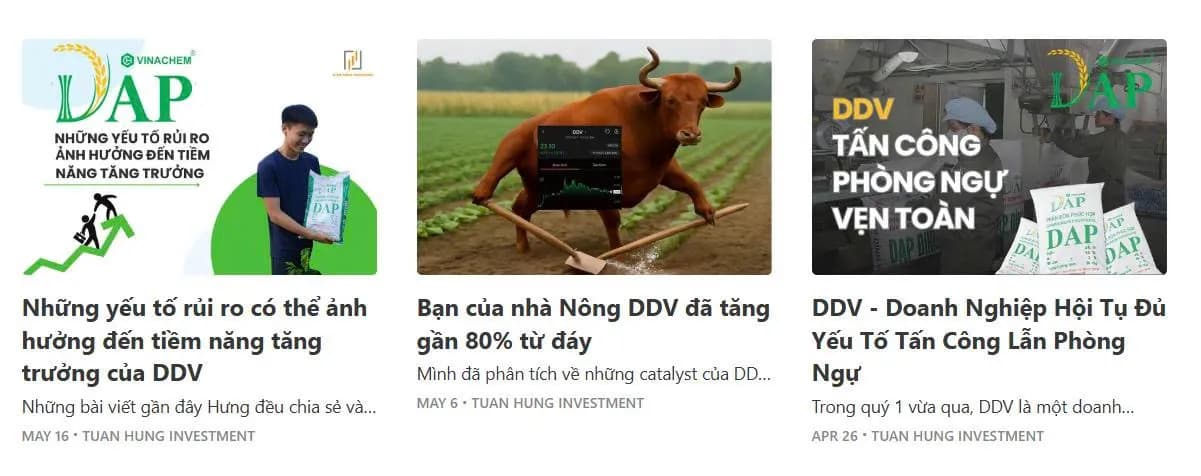 DDV là cổ phiếu có lẽ Anh Chị Em nhà đầu tư theo dõi THT Investing sẽ được nghe mình phân tích rất nhiều trong quý 2/2025 này. 3 bài viết trên Blog của Team gần nhất đều viết về DDV .