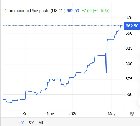 Tuy nhiên thì giá DAP vẫn liên tục vượt đỉnh ngắn hạn. Có một điều lưu ý là phân từ Phosphate là DAP thì khả năng Trung Quốc vẫn xuất khẩu nhỏ giọt do Trung Quốc muốn hạn chế xuất khẩu các sản phẩm có đầu vào từ quặng Apatit khi quặng Apatit không thể tái tạo và trữ lượng ít hơn khí.