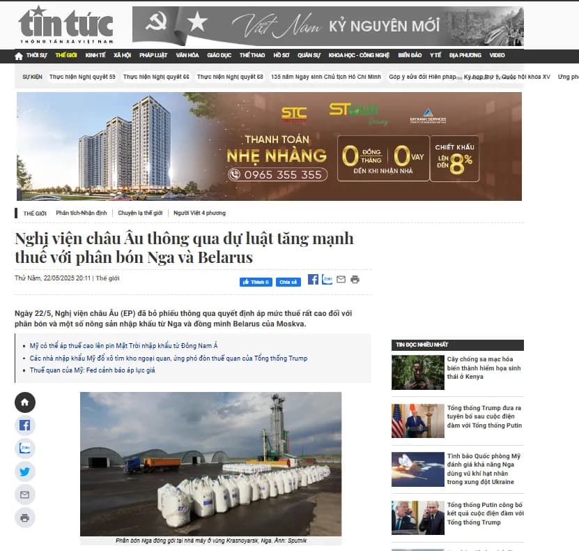 Đầu tư vào nhóm hàng hóa Commodity như Phân Bón chưa bao giờ là dễ dàng khi giá phân bón biến động với rất nhiều yếu tố của thế giới. Trong cuối tuần qua, có 2 thông tin khá quan trọng có thể ảnh hưởng đến xu hướng giá phân bón Thế giới là “Nghị viện châu Âu thông qua dự luật tăng mạnh thuế với phân bón Nga và Belarus” và " thông tin Lo ngại về Trung Quốc sẽ xuất khẩu lại Ure"