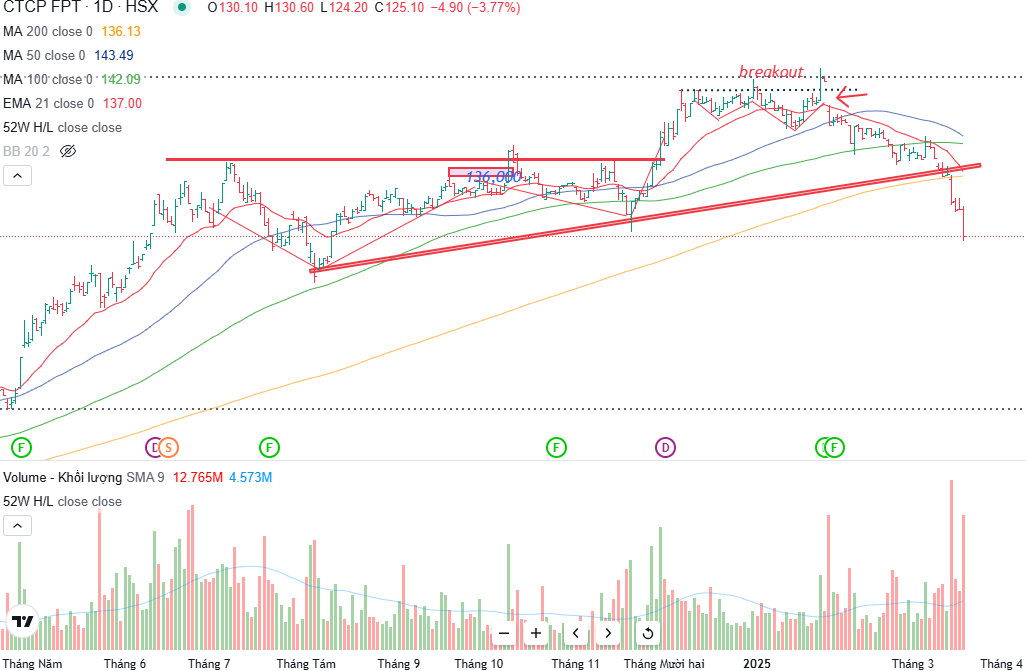 Xét về cổ phiếu FPT, nó đang nằm ở ngưỡng <130, và tiếp tục bị nước ngoài Short. Xét về mặt kỹ thuật, cổ phiếu gãy trend vì giá nằm dưới MA200 ngày, bị ảnh hưởng từ việc Deepseek của Trung Quốc ra mắt với chi phí rẻ nhưng mang tới công dụng tương đương với các con AI hàng đầu => khiến các cp Bigtech trên thế giới bị short mạnh.
