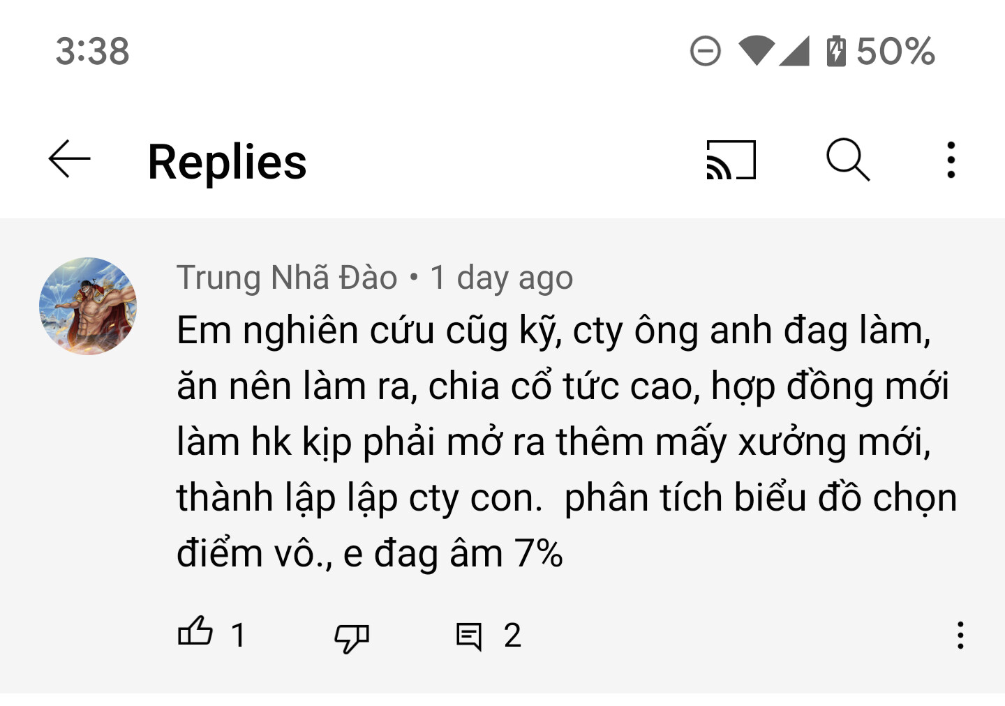 Giữa đêm đi dạo 1 vòng thấy cái bình luận này trên youtube gửi mọi người xem ví dụ về 1 loại cty tốt nhưng cp ko tốt… Có thể là do ko có lái