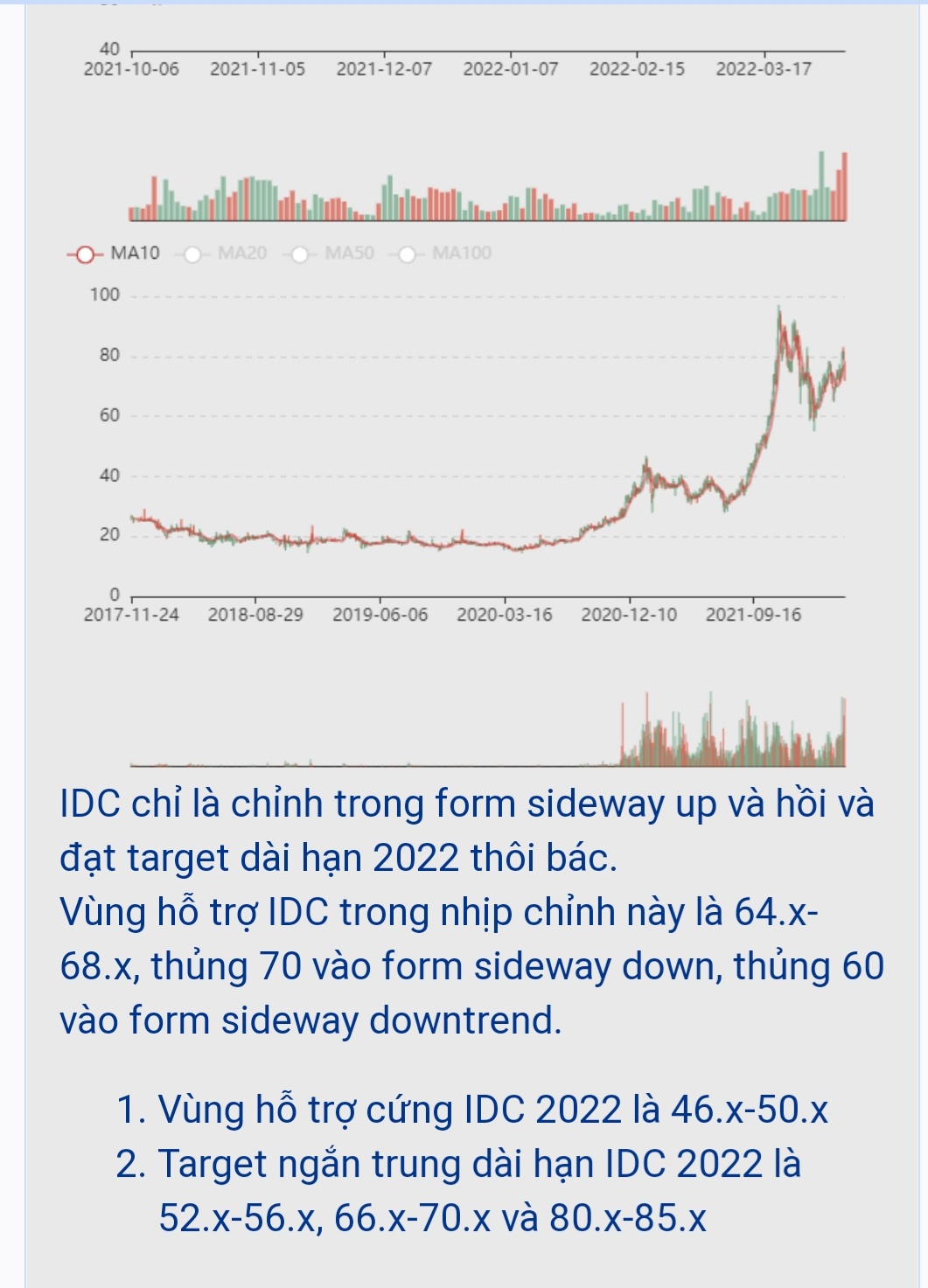IDC tiếp tục điều chỉnh từ vùng target dài hạn 2022. Thủng 60 là vào sideway downtrend.