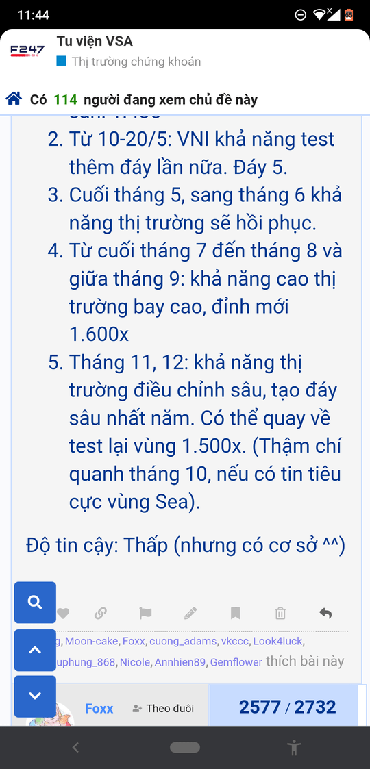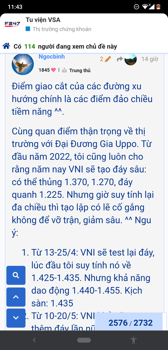 - Về mặt TA thì như đã phân tích rồi đó, hôm nay có thể test lại 1440 ( thủng trong phiên không tính) mà hồi lại thì tạm ổn, còn thủng luôn 1440 thì về 1400-142x, còn thủng 1400 thì die hết.