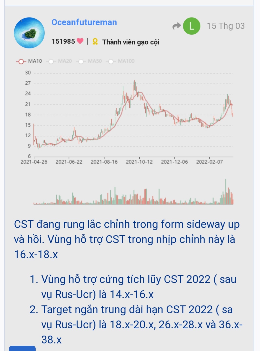 Theo quan sát và tính toán thì khả năng cao PTC ngưng rơi trong vùng hỗ trợ cứng này và sẽ sớm tích lũy và hồi trở lại. Nếu PTC hồi trở lại thì khả năng hồi lên vùng 50.x-54.x