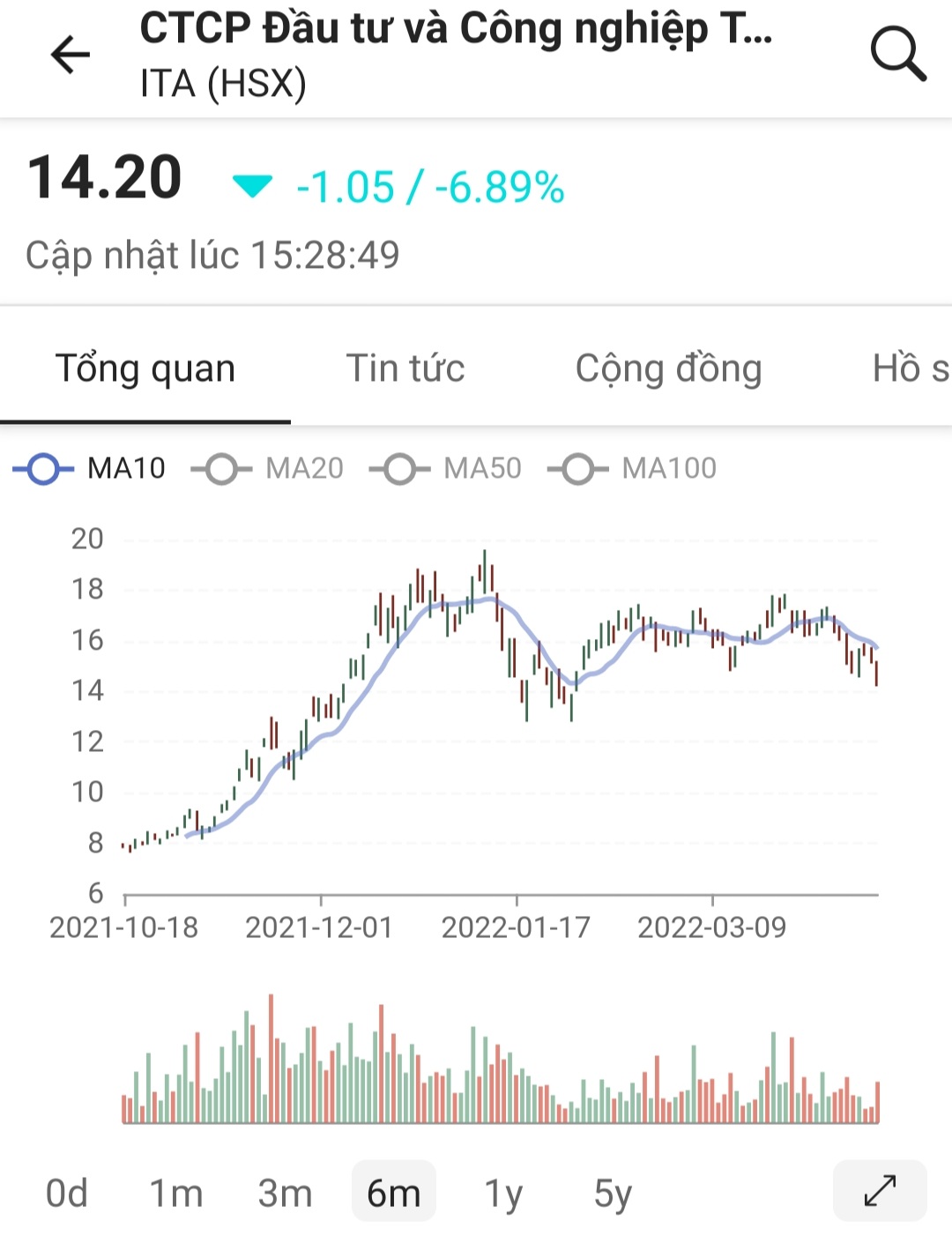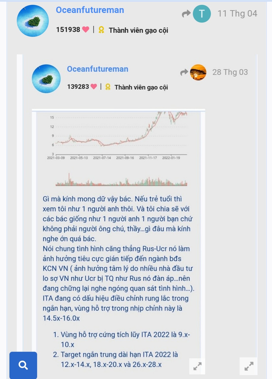 Còn ITA rơi về tới 12.x mới ngưng và hồi trở lại thì khả năng chỉ hồi tới 15.5x-dưới 17.x trong ngắn hạn.