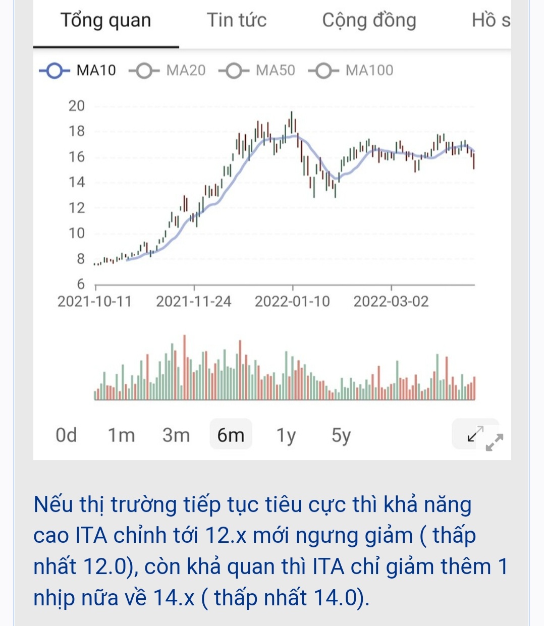 Nếu ITA ngưng giảm và hồi từ vùng 14.0 thì khả năng hồi lên 17.x-18.x trong ngắn hạn.