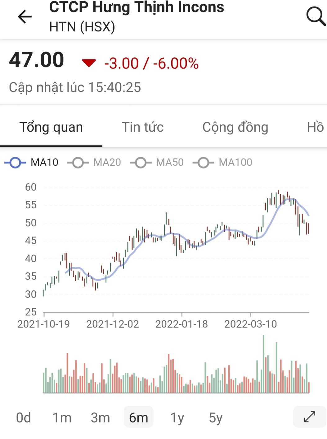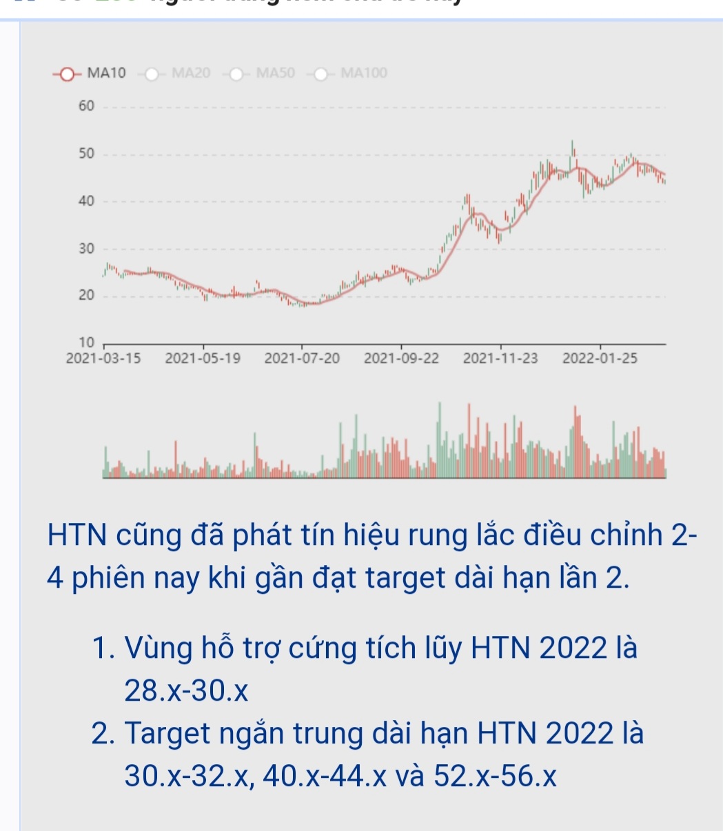 HTN chỉnh từ vùng target dài hạn 2022, cần cân nhắc khi bắt đáy hay mua mới. Vùng hỗ trợ nhịp chỉnh này HTN là 42.x-46.x