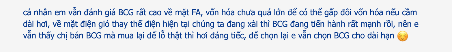 Giai ơi e up lại nhận định của e về BCG đc ko? Chị cũng đang ngó nghiêng e này