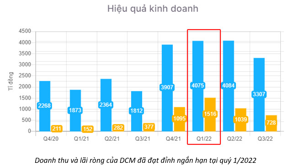 DCM vừa công bố kết quả kinh doanh rất tích cực và tăng trưởng tốt so với cùng kỳ, nhưng lại có sự sụt giảm đáng kể so với 2 quý đầu năm.