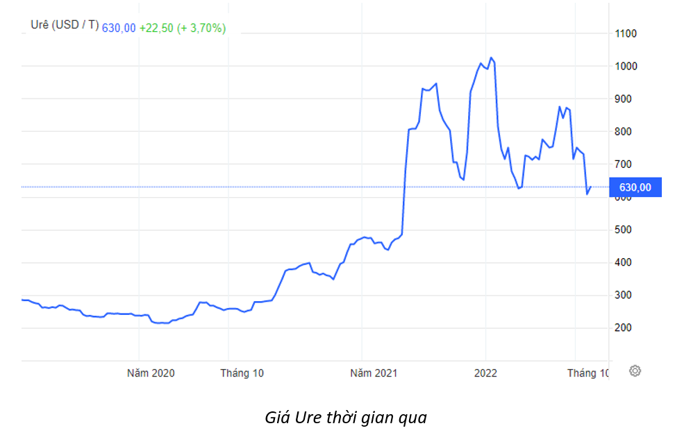 Từ cuối năm 2021 và đầu năm 2022, giá Ure tăng mạnh lên ngưỡng 1000 USD/T, nhờ vậy mà doanh thu của mảng Ure tăng trưởng đột biến và có khả năng đã đạt đỉnh vào quý 1/2022.