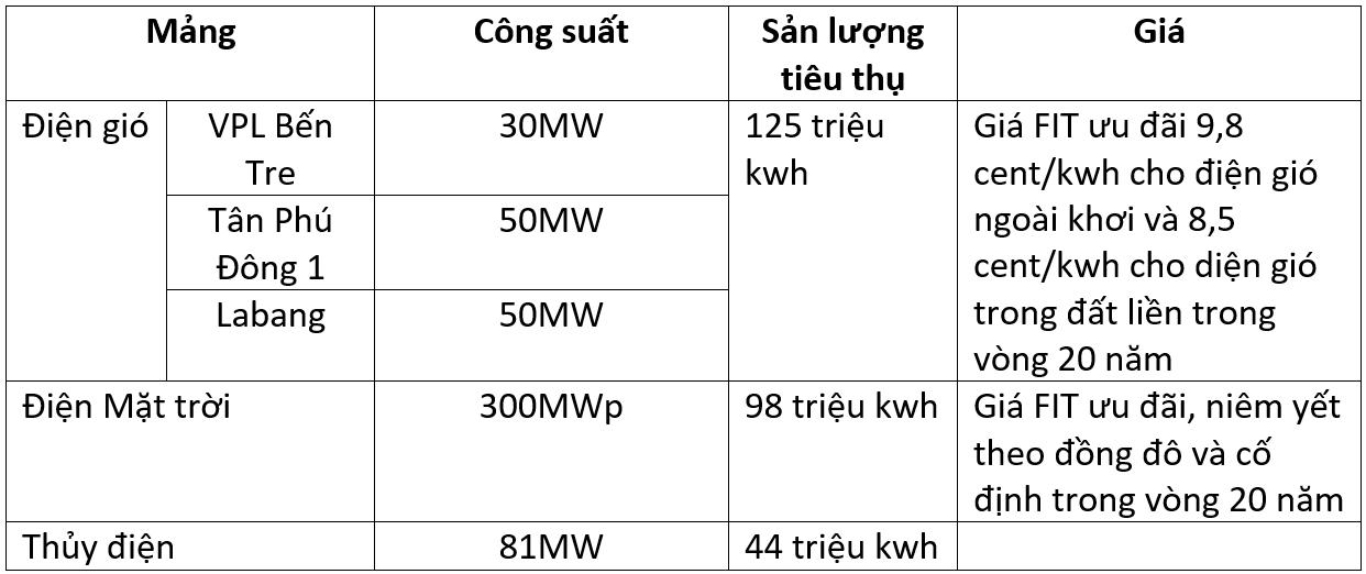 Mảng điện mặt trời và điện gió được hưởng giá FIT ưu đãi cố định trong 20 năm, do đó tăng trưởng doanh thu tương đương tăng trưởng sản lượng tiêu thụ cộng mất giá của VND.