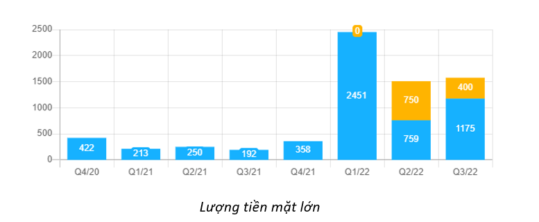 - Ngoài ra, lượng tiền mặt lên tới hơn 1500 tỷ đồng và doanh nghiệp chia cổ tức đều đặn hằng năm chứng tỏ cơ cấu tài chính của doanh nghiệp rất tốt, có dòng tiền mặt để đáp ứng cho hoạt động mở rộng kinh doanh và không bị áp lực lớn bởi chi phí lãi vay.