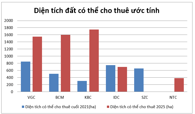 - Đánh giá quỹ đất là yếu tố quan trọng nhất của các doanh nghiệp BĐS KCN, chúng tôi ưu tiên lựa chọn các doanh nghiệp có quỹ đất tiềm năng, bao gồm quỹ đất sẵn sàng cho thuê và quỹ đất mới từ 2022 trở đi. Các doanh nghiệp có quỹ đất sẵn sàng cho thuê sẽ có khả năng tăng lợi nhuận trong năm 2022 tốt hơn.