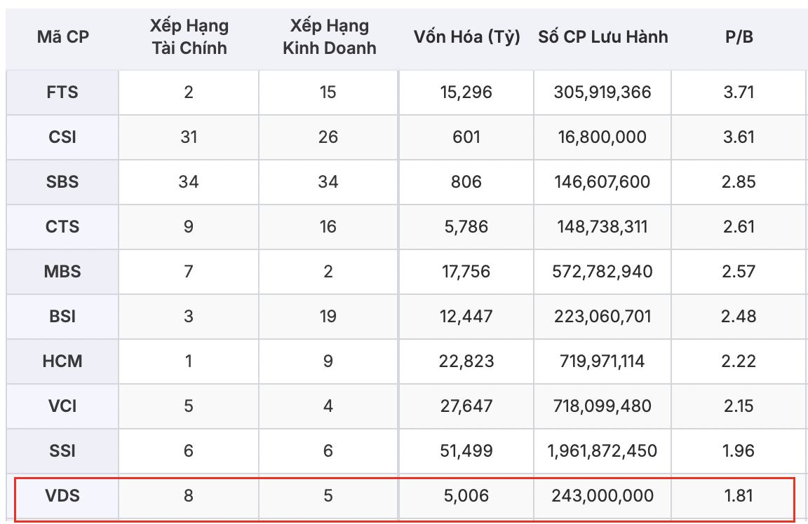 So sánh với ngành: P/B trung bình ngành chứng khoán hiện dao động từ 1.5 - 2.5, cho thấy VDS đang được định giá ở mức trung bình thấp so với các công ty cùng ngành.
