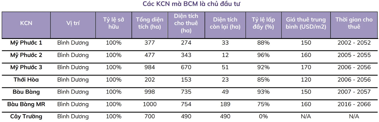 - Phần lớn các KCN đang vận hành của BCM nằm ở Bình Dương, giúp doanh nghiệp hưởng lợi từ những tín hiệu tích cực này.