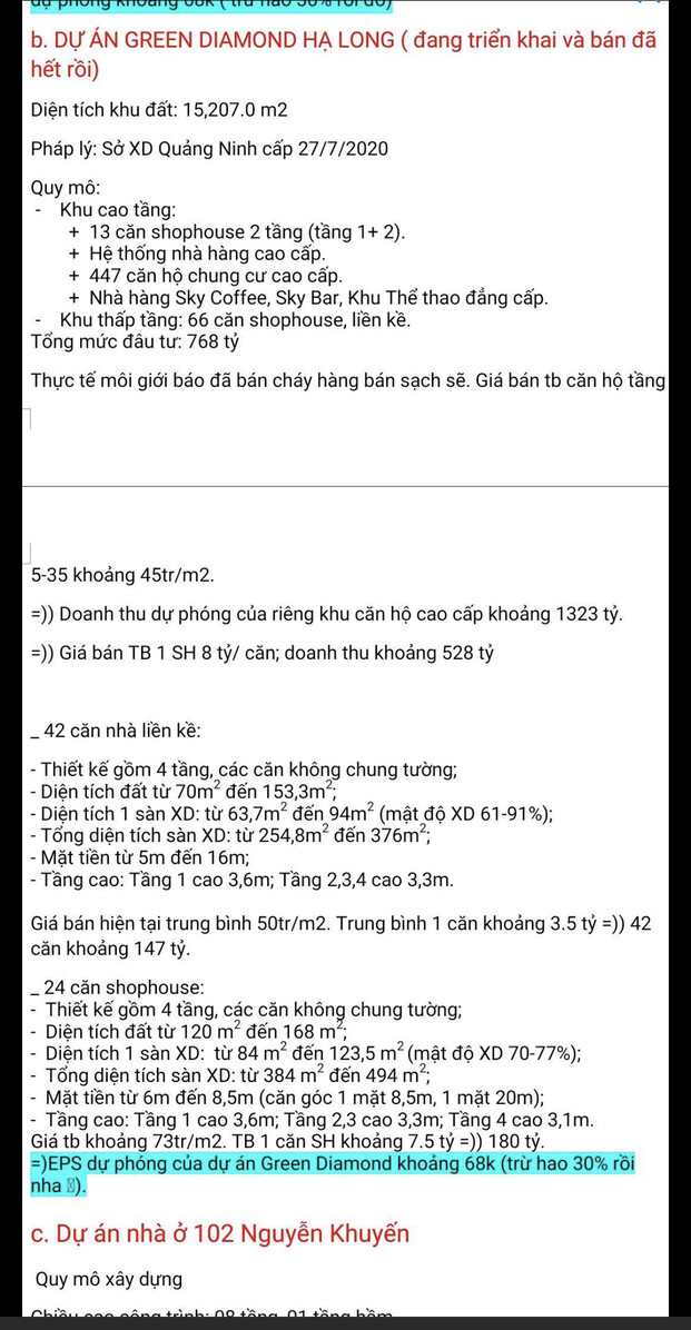bác chủ định giá theo RNAV thì HD6 giá bao nhiêu? Định giá PE như trên e thấy không đúng lắm cho bđs.
