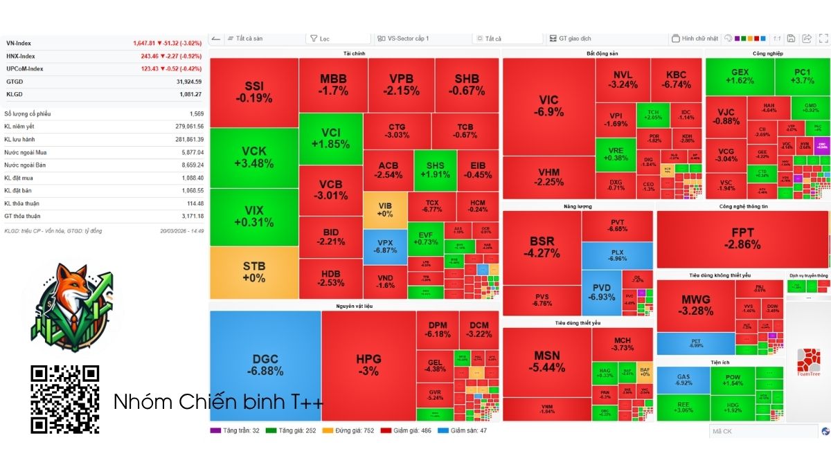 VNINDEX giảm hơn 3% là một con số đủ lớn để gây chú ý, nhưng điều quan trọng không nằm ở mức giảm mà nằm ở cách thị trường giảm. Độ rộng nghiêng hẳn về bên bán với gần gấp đôi số mã giảm so với mã tăng, trong khi thanh khoản duy trì ở mức cao ~31.000 tỷ. Điều này cho thấy lực bán không hề yếu, thậm chí đang được thực hiện một cách chủ động.