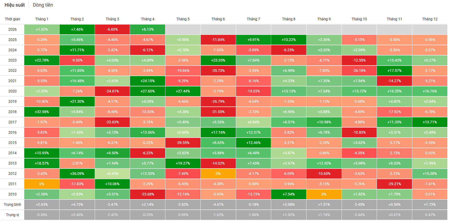 5. Hiệu suất & mùa vụ