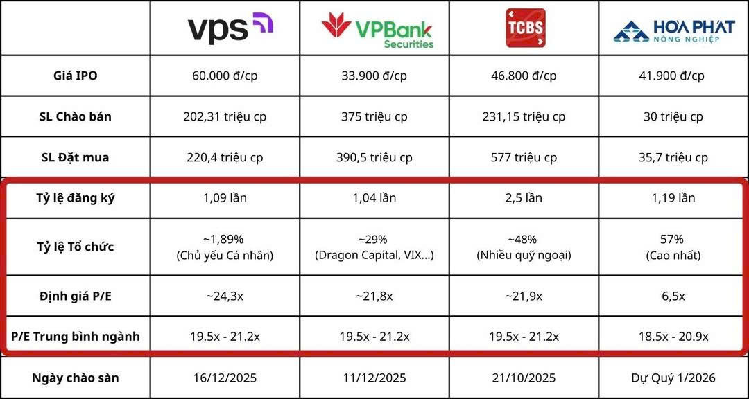 Nhìn lại 4 cổ IPO gần đây thì TCX và HPA có tổ chức đăng ký mua nhiều nhất lần lượt 48% và 57%. Đặc biệt sau 3 deal IPO của công ty chứng khoán không quá thành công về ngày lên sàn thì HPA ít được PR rầm rộ nhưng có tỷ lệ tổ chức tham gia cao.