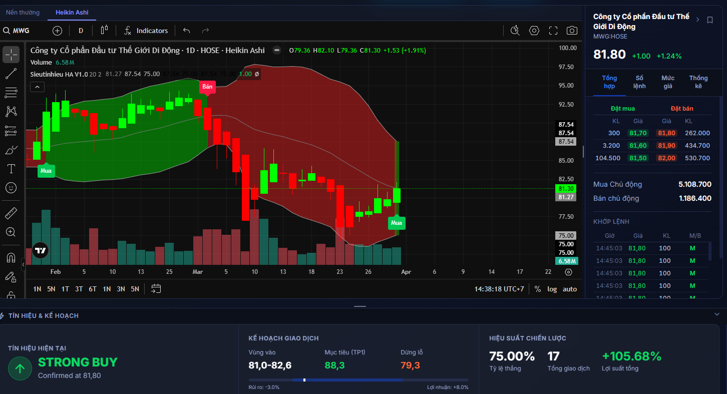 • Vùng 81 là điểm mua hợp lý vì hội tụ đủ yếu tố: retest, dòng tiền, tín hiệu nến