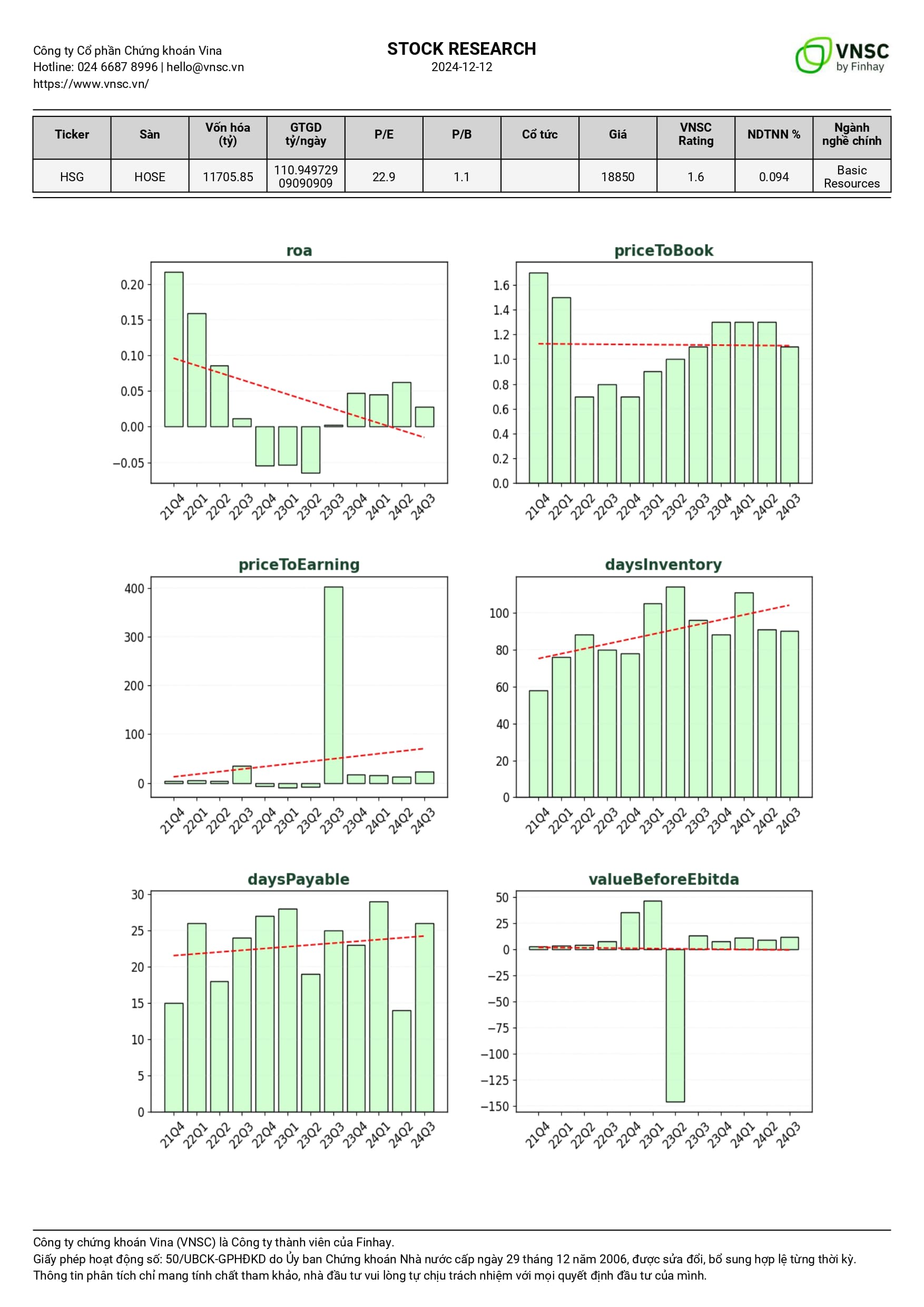Lưu ý: Báo cáo này do Công ty Cổ phần Chứng khoán Vina (VNSC), công ty thành viên của Finhay, biên soạn và phát hành. Mọi thông tin trong báo cáo đều được tổng hợp từ các nguồn tin cậy tại thời điểm công bố. Tuy nhiên, VNSC không cam kết về tính chính xác, đầy đủ hay kịp thời của các thông tin này cho bất kỳ mục đích cụ thể nào. Quan điểm trong báo cáo có thể thay đổi mà không cần thông báo trước và không phản ánh ý kiến chính thức của VNSC. Báo cáo này chỉ có tính chất tham khảo, không đưa ra bất kỳ khuyến nghị nào phù hợp với các mục tiêu đầu tư, tình hình tài chính hoặc nhu cầu cụ thể của người đọc. Mọi nội dung của báo cáo là tài sản của VNSC, người nhận không được sao chép, phát hành lại hoặc phân phối dưới bất kỳ hình thức nào mà không có sự cho phép bằng văn bản từ VNSC.