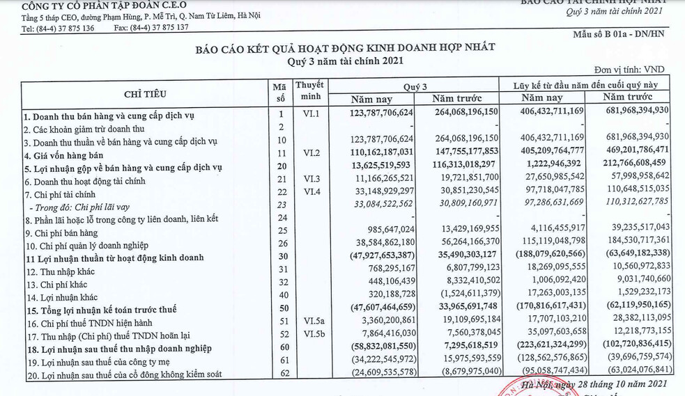 năm 2021 Dự kiến doanh thu là 1600 tỷ ( chủ yếu bán hàng Vân đồn ) nhưng 3 quý đầu năm đã lỗ -220 tỷ nên khả năng nếu giống 2020 thì khả năng lỗ khá cao trừ khi doanh thu tại Vân đồn đạt 4000 tỷ quý 4