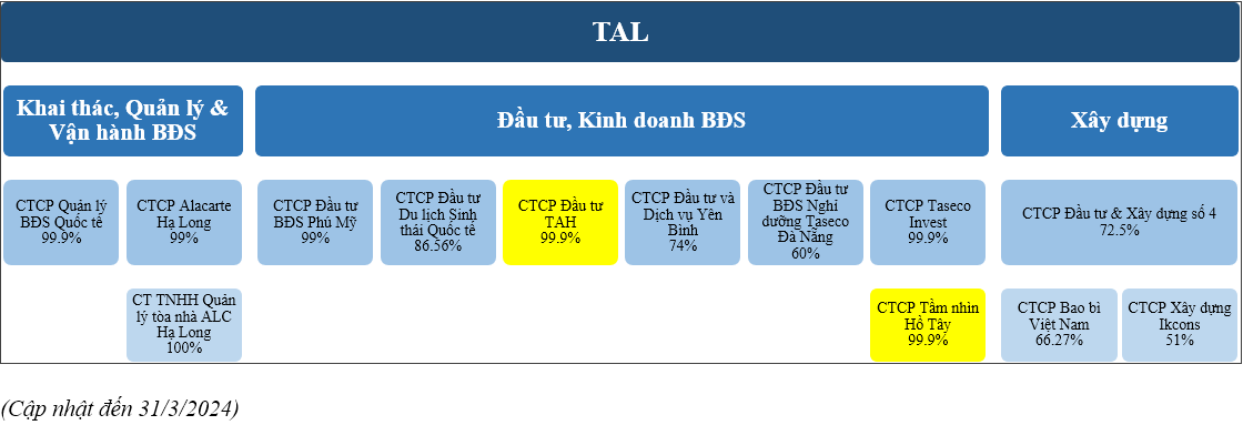 Trong Q4.2024, TAL chuyển nhượng toàn bộ cổ phần Cty tầm nhìn Hồ Tây, đây là đơn vị sở hữu dự án thành phần Lô B3-CC2A Starlake khối văn phòng. Công ty ghi nhận lãi chuyển nhượng công ty con 538 tỷ.