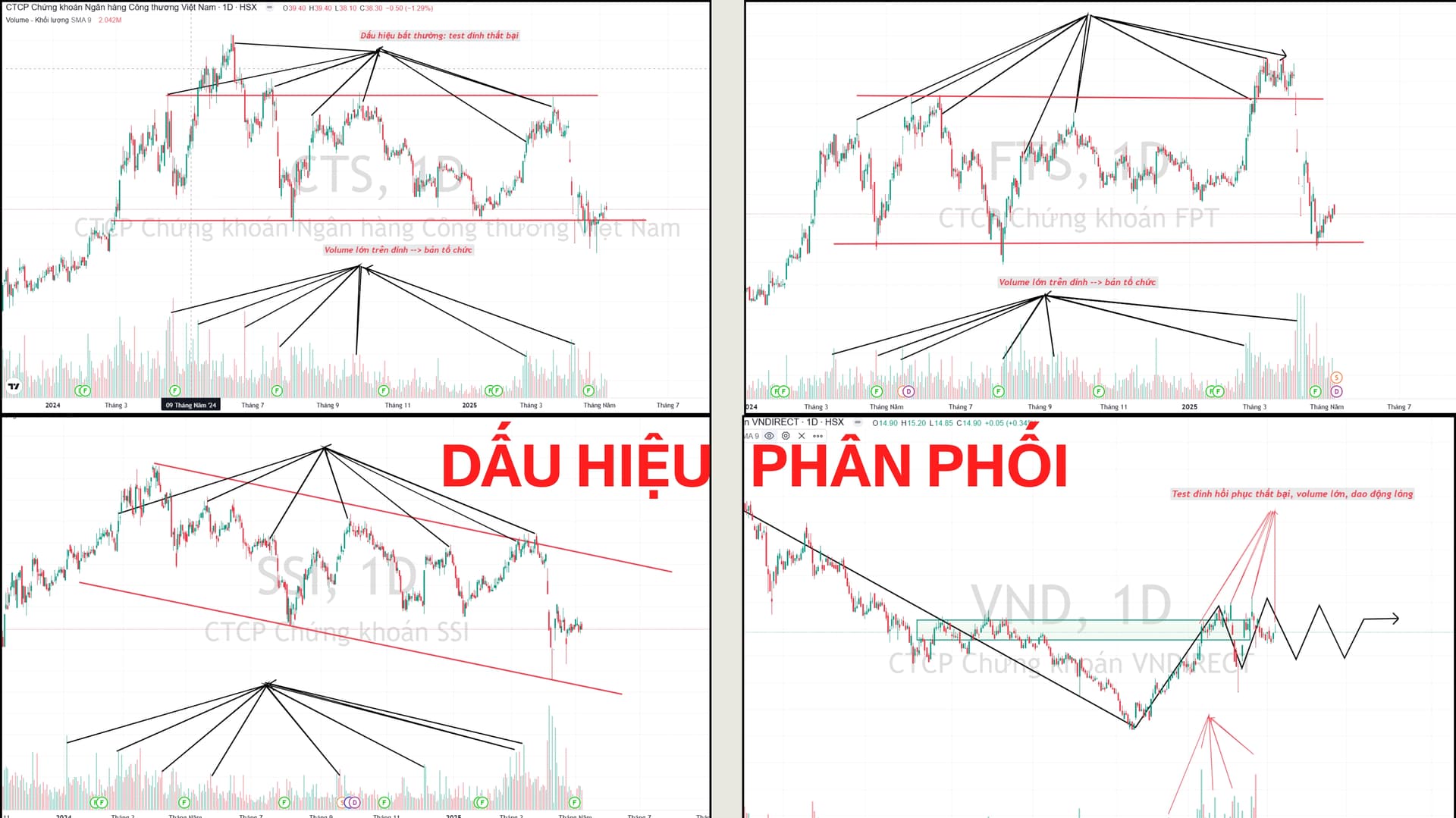 Đi ngang vùng đỉnh – dấu hiệu phân phối: SSI, FTS, BSI, VCI, CTS SSI,…
