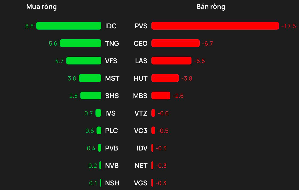 Trên HNX, khối ngoại bán ròng khoảng 9 tỷ đồng