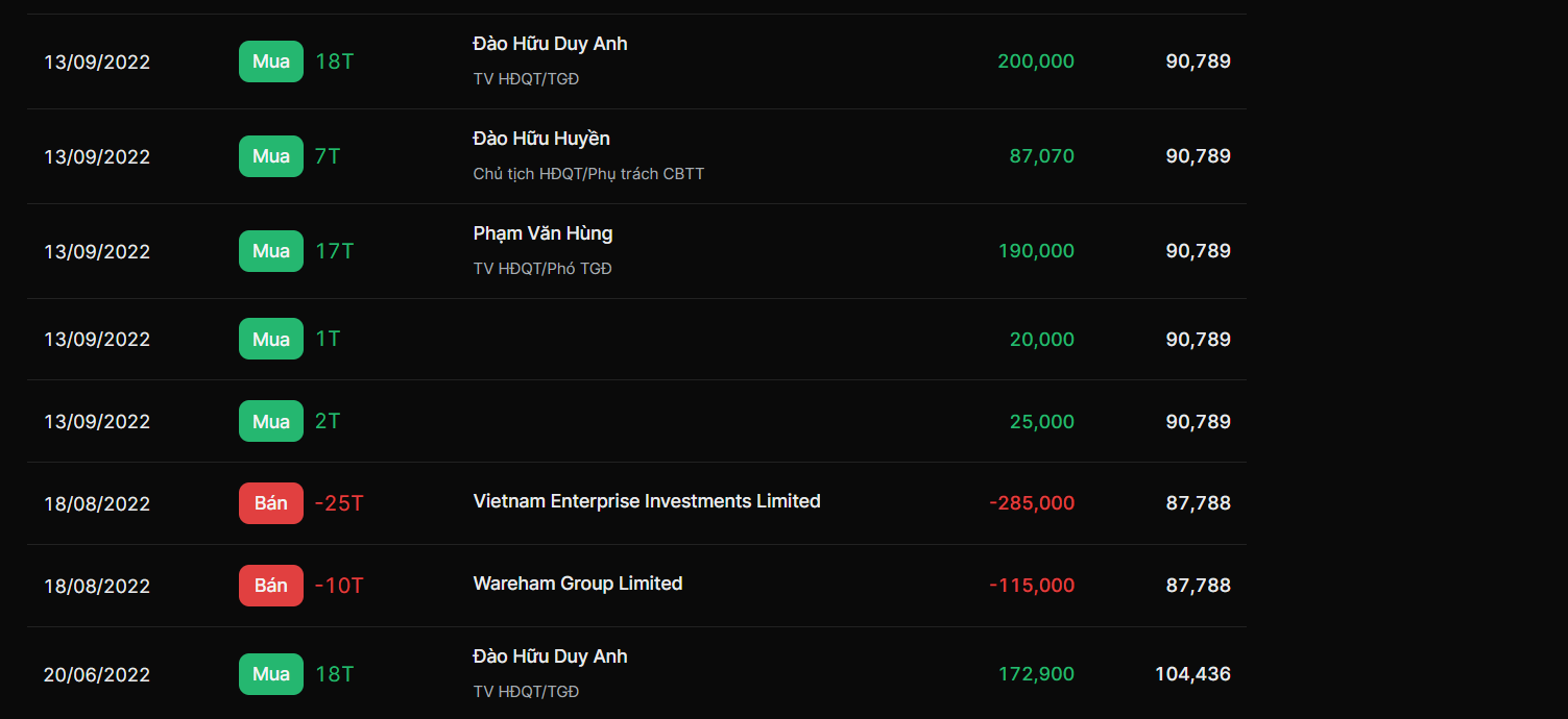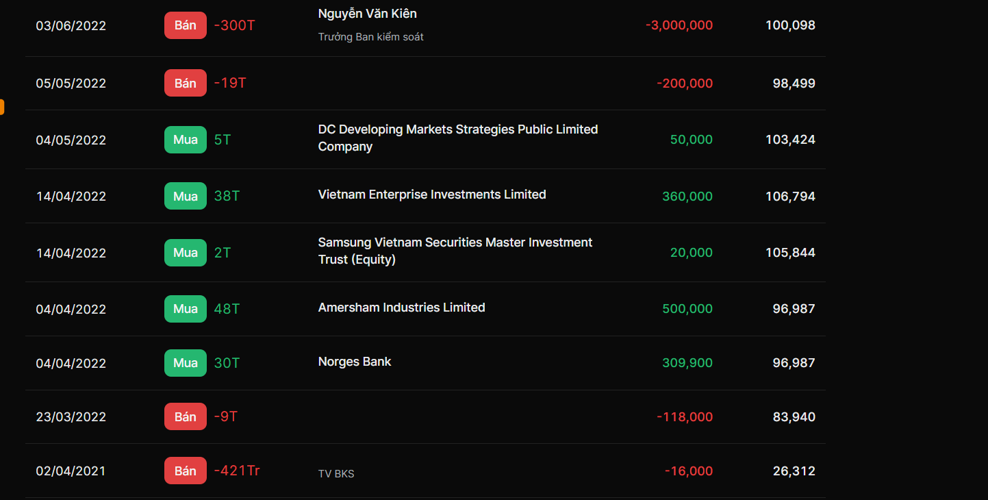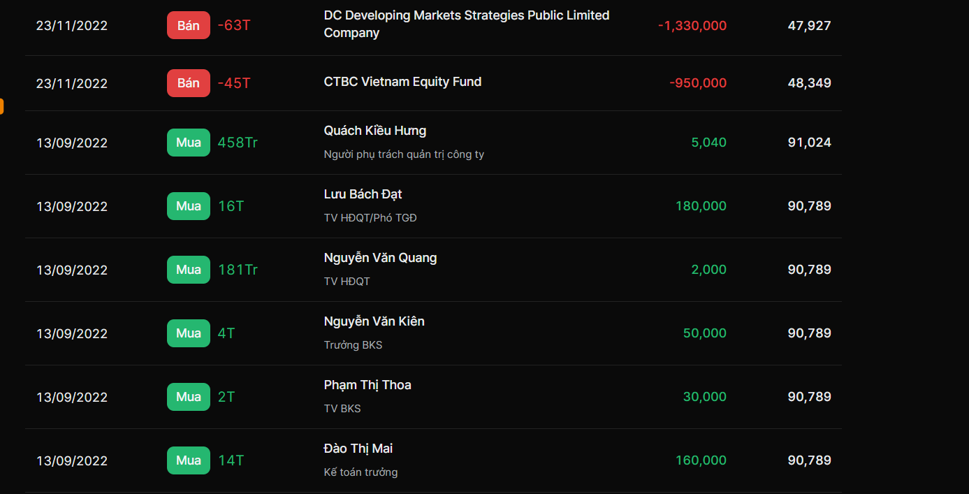 Nhìn vào đây có thể hiểu vì sao trong 1 năm nay DGC rất ít biến động. Các giao dịch hằng ngày hầu như chỉ là NĐT các nhân mua/bán với nhau.