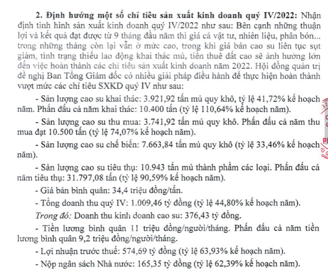 • Kế hoạch doanh thu kinh doanh cao su Q4/2022 đạt 376 tỷ đồng