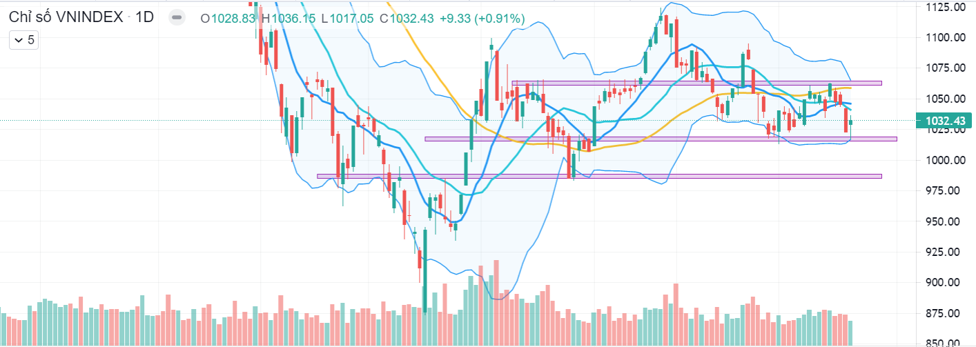 Kịch bản tích cực: Chỉ số chung tiếp tục đà hồi phục và tích lũy quanh +/- 1030 => Quan sát lại danh mục, giữ lại 1 nửa số cổ phiếu về ngành kỳ vọng như Đầu tư công - Thép…. còn lại anh chị có thể hạ bớt khi về vùng này. Khả năng về 1030 gặp rung lắc dễ xảy ra.