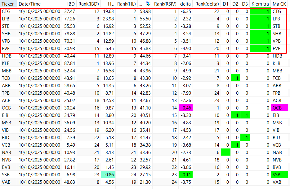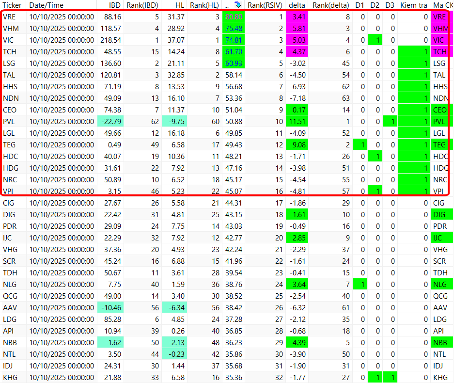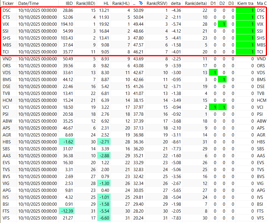 RSIS là tương quan cổ phiếu đó so với nhóm ngành của nó. RSIS >50 tức là nó đang khỏe hơn nhóm ngành chung của nó.