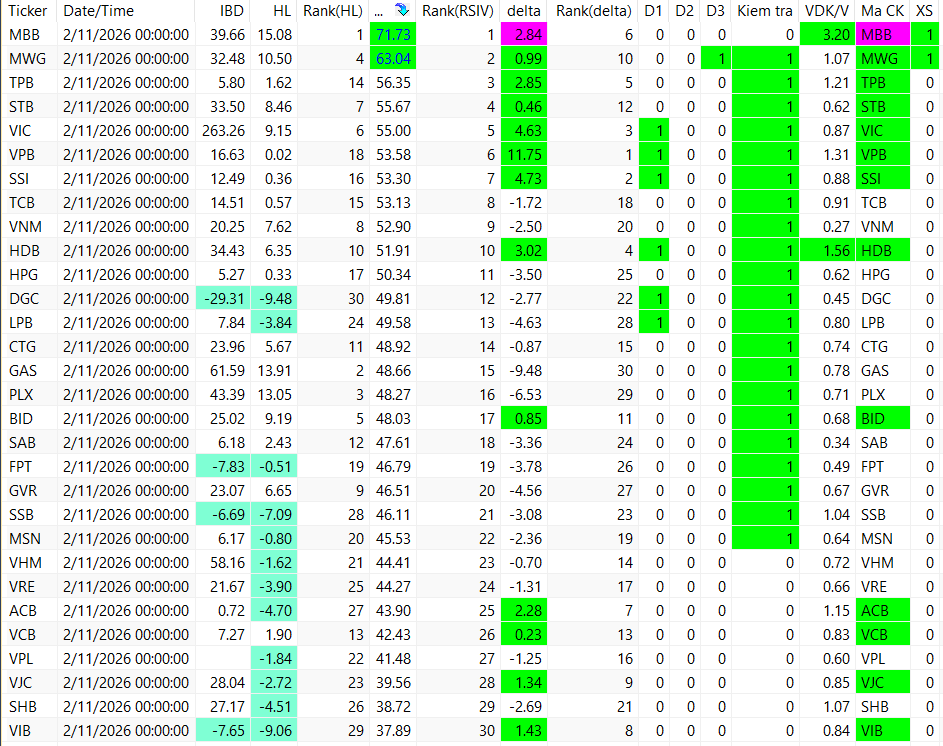 Cổ phiếu nào tích cực hơn Vnindex ngày 11/2/2026?