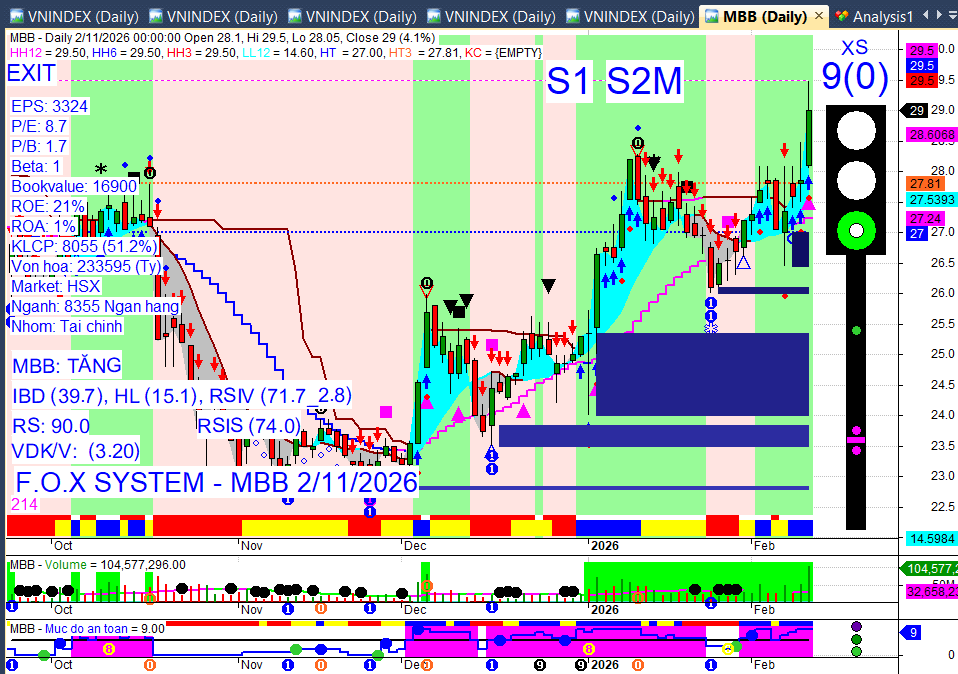 MBB đang đứng đầu nhóm VN30 và cả nhóm bank