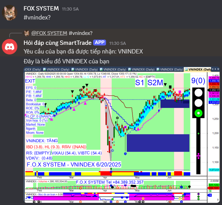 Chỉ số Vnindex cuối ngày 20/6/2025