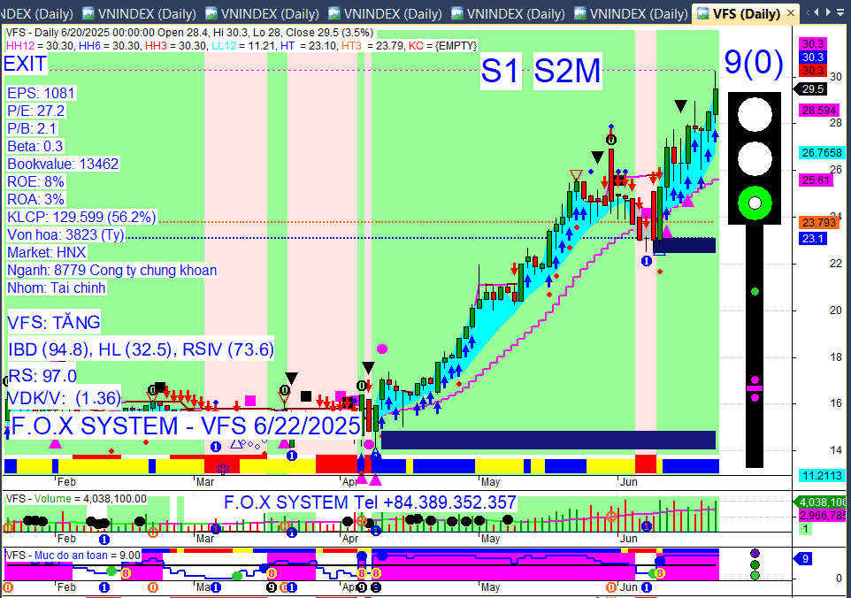 Nếu giữ dài thì nhìn vùng xanh hồng và màu của mức an toàn. Hiện tại vừa chuyển từ vùng xanh sang hồng và mức an toàn chuyển từ màu tím ( >5) sang màu trắng ( <5). Vậy là điều kiện để giữ đã bị vi phạm rồi đấy. bạn có thể theo dõi đến cuối phiên để ra quyết định