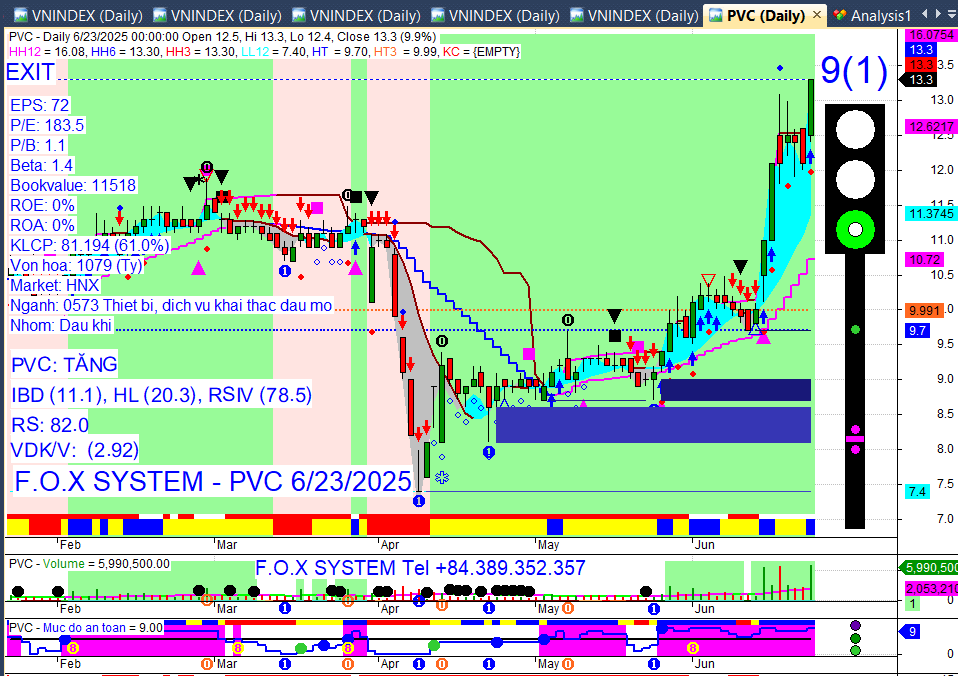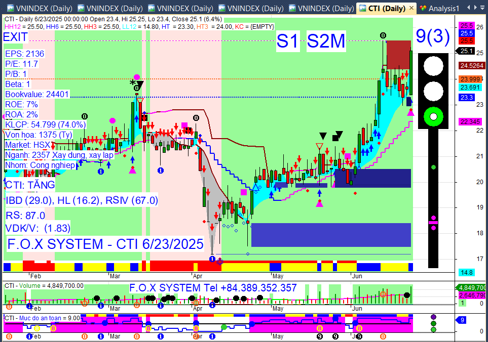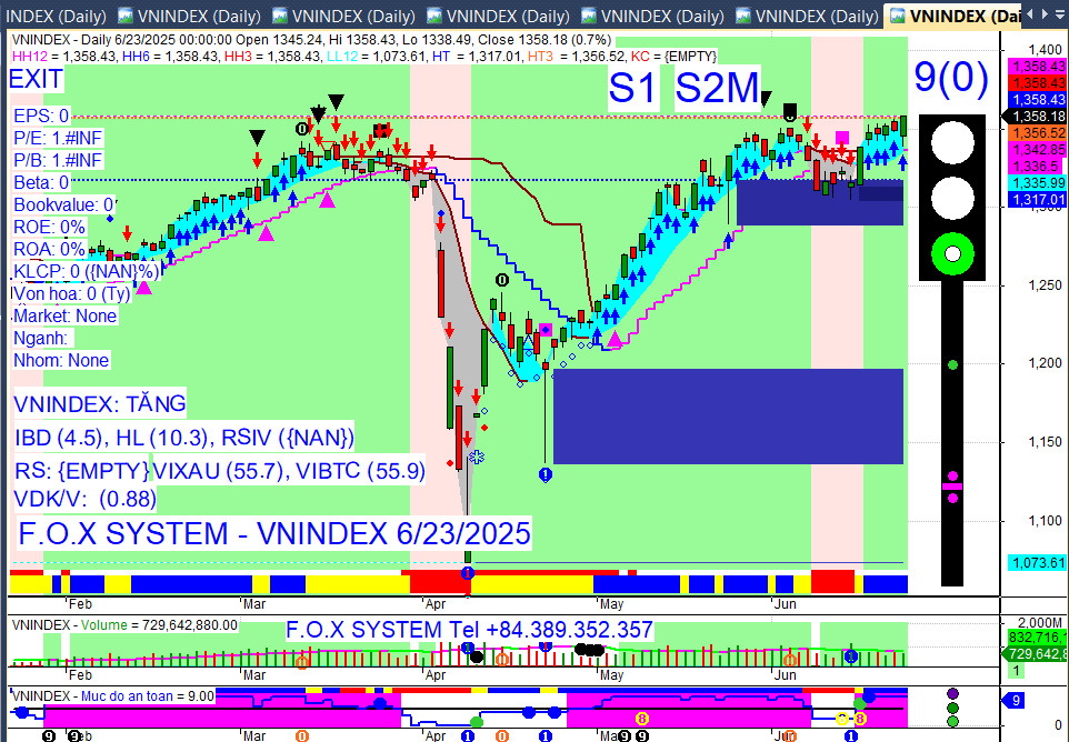 Chỉ số Vnindex cuối ngày 23/6/2025