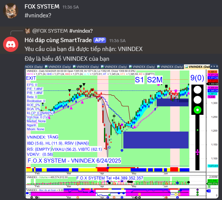 Chỉ số Vnindex cuối ngày 24/6/2025.