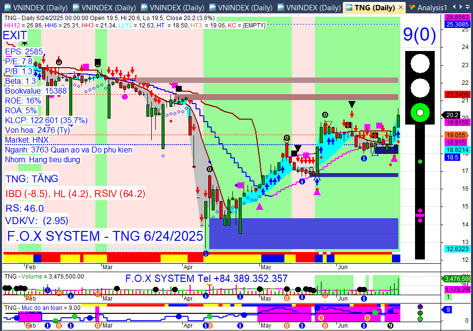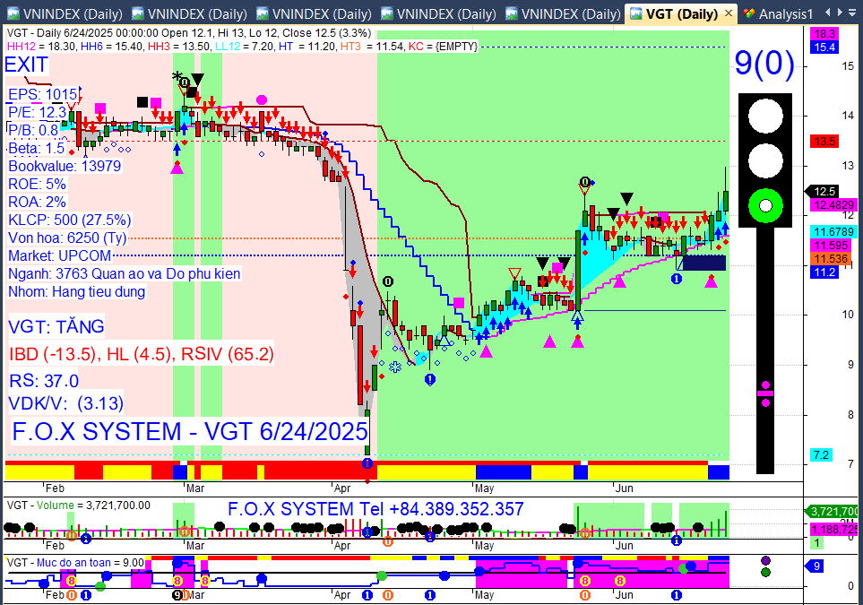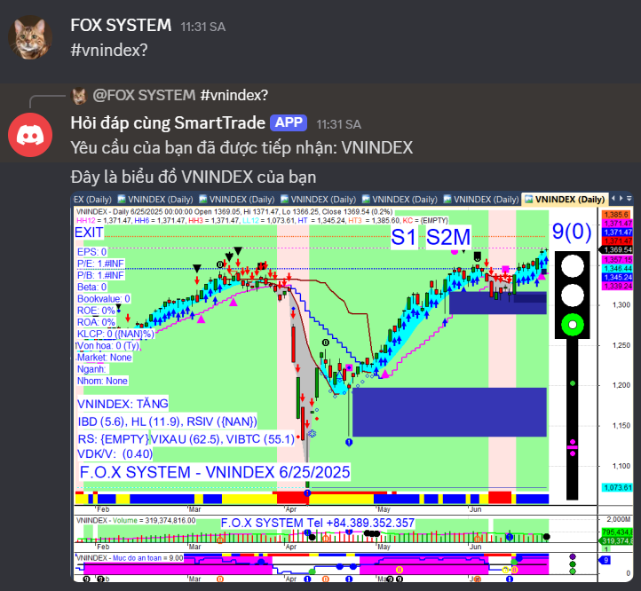Chỉ số Vnindex trưa ngày 25/6/2025
