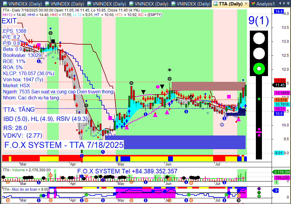 Chỉ số Vnindex trưa ngày 18/7/2025
