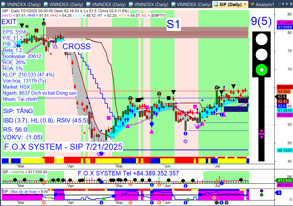 Chỉ số Vnindex trưa ngày 21/7/2025