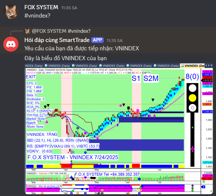 Chỉ số Vnindex cuối ngày 24/7/2025