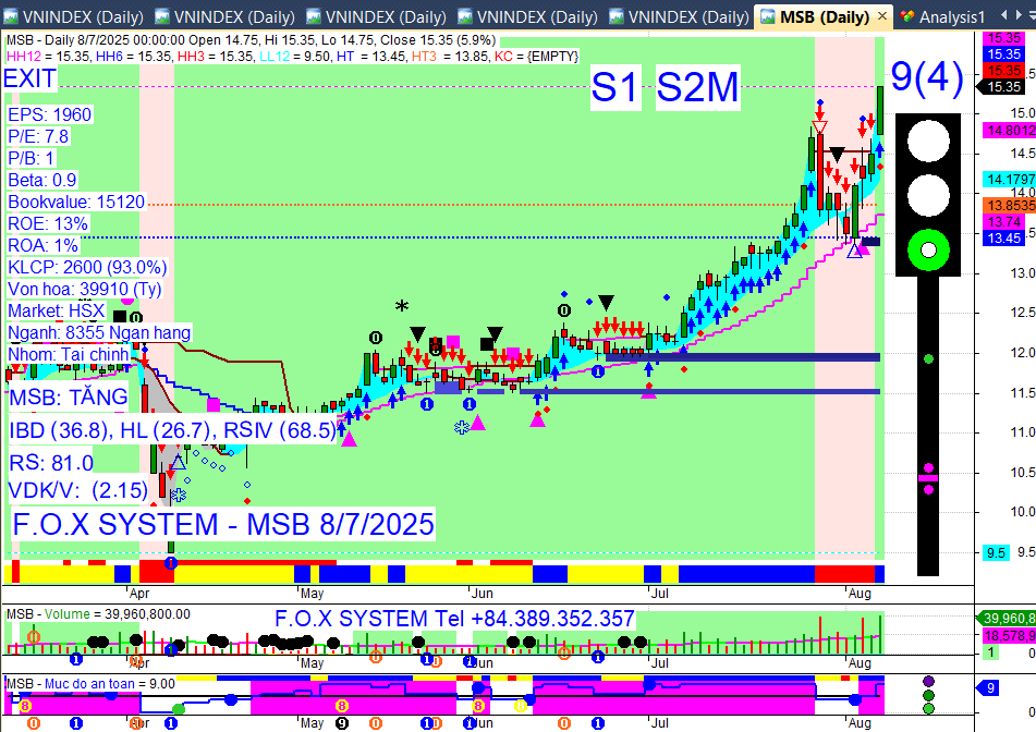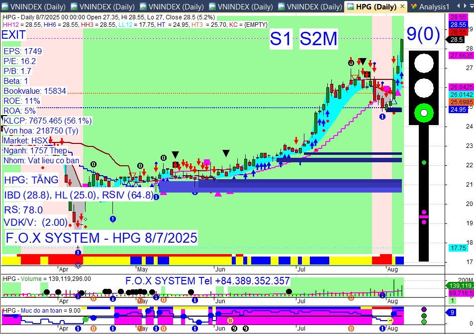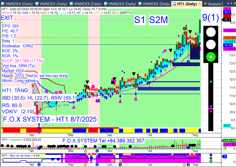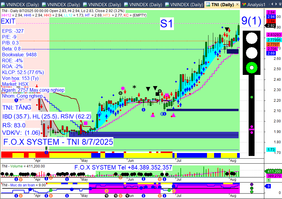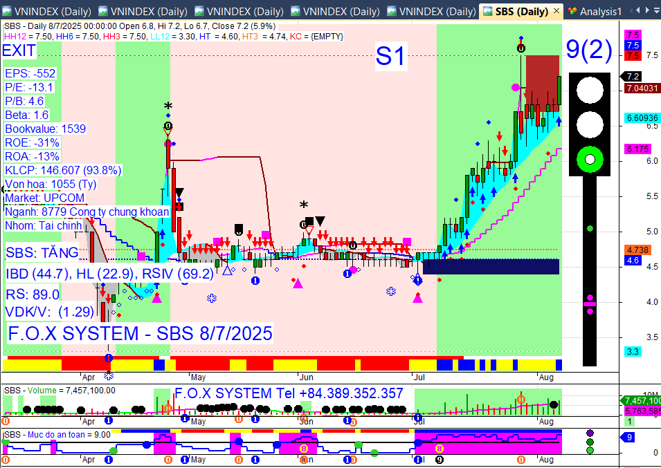 Chỉ số Vnindex trưa ngày 8/8/2025