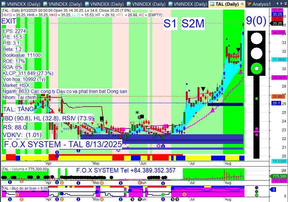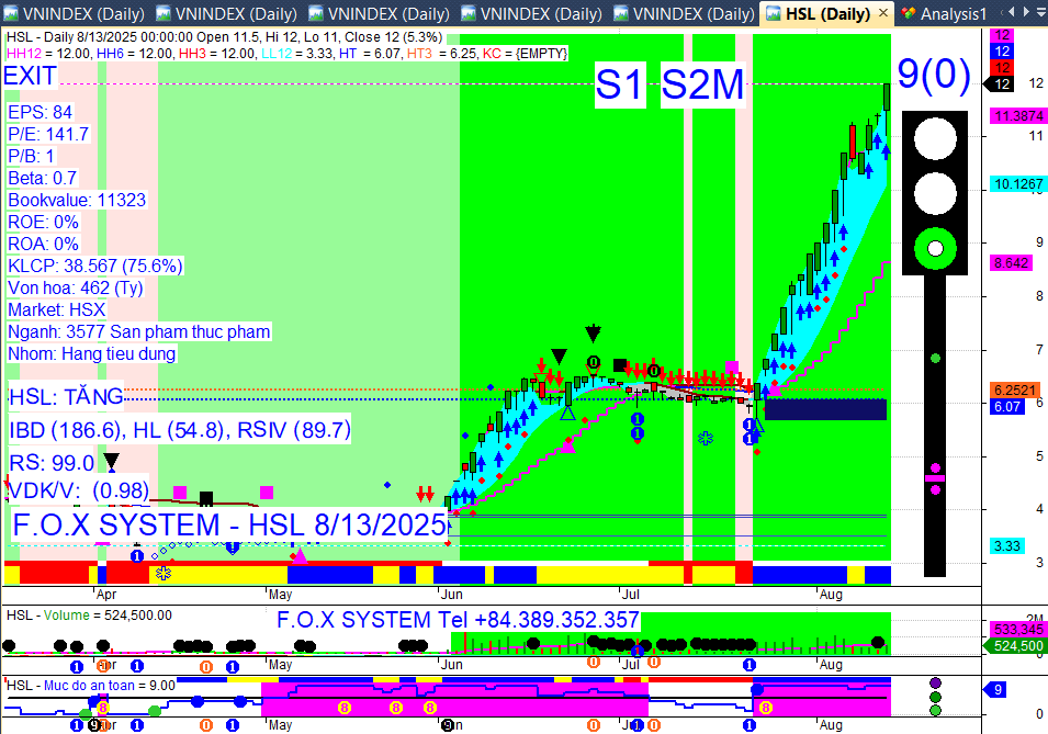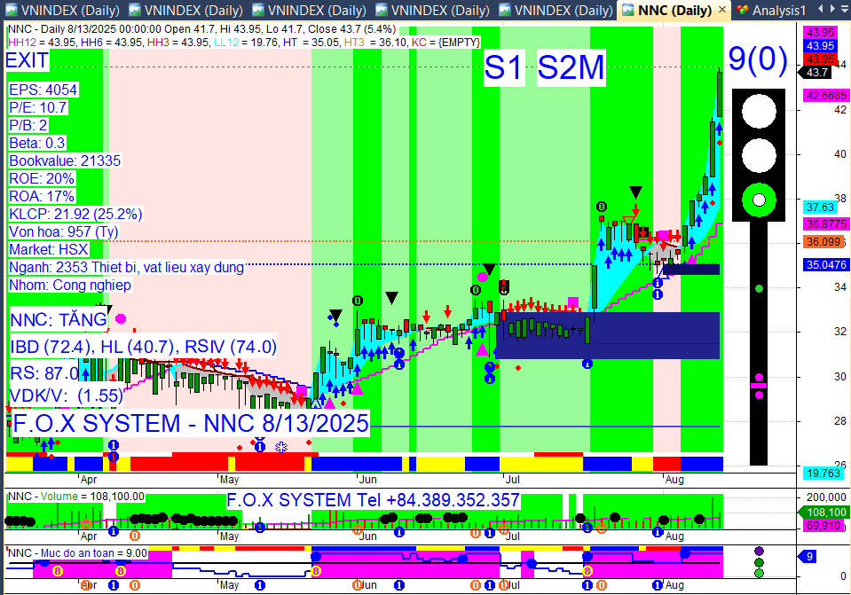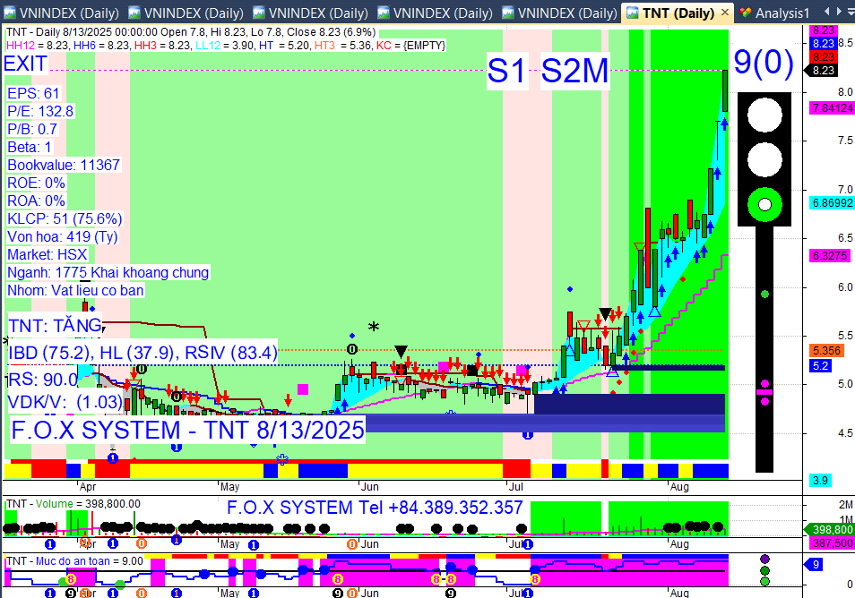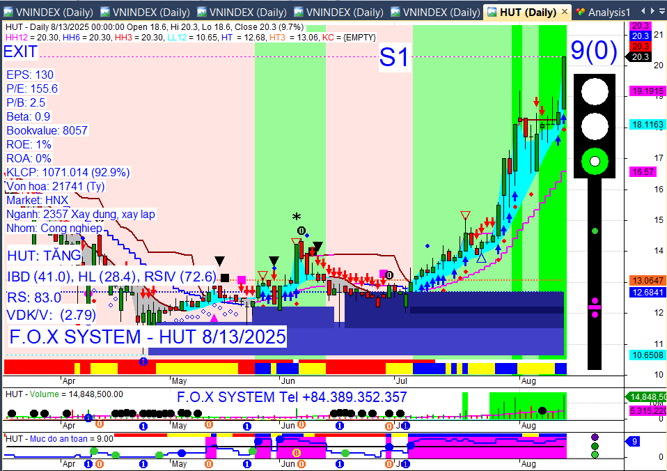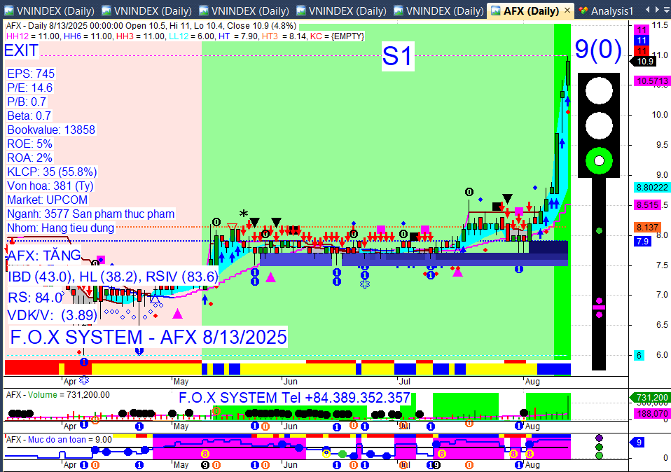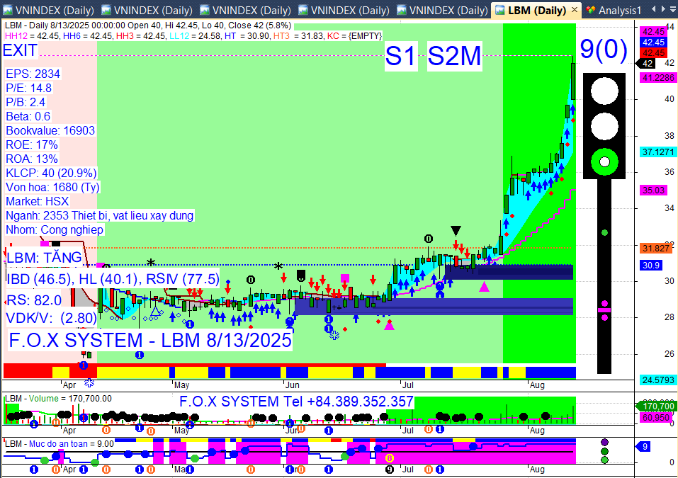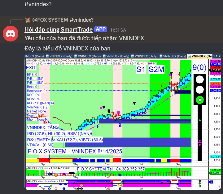 Chỉ số Vnindex trưa ngày 14/8/2025.